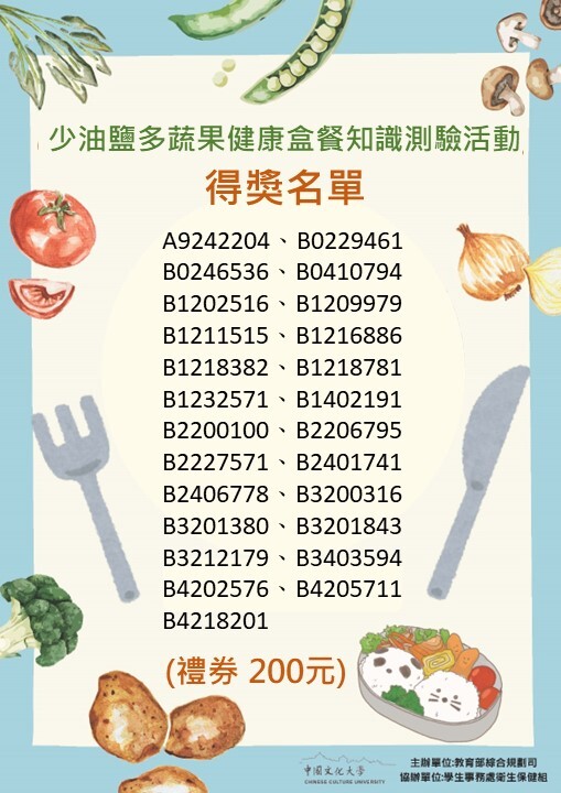 校內學餐餐點熱量、營養素及過敏原含量(詳細資訊)